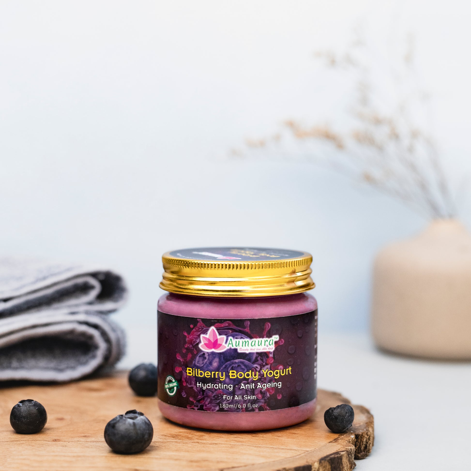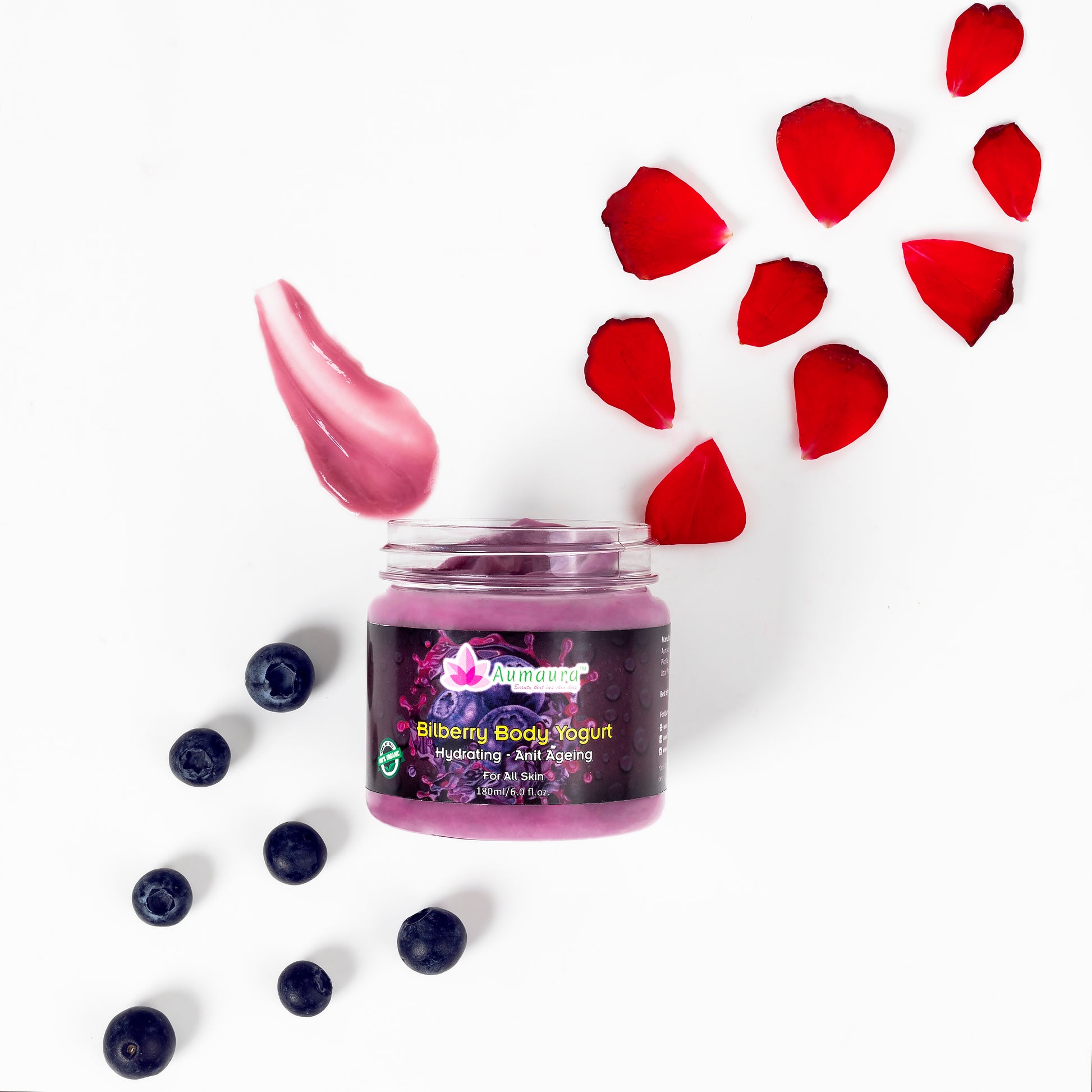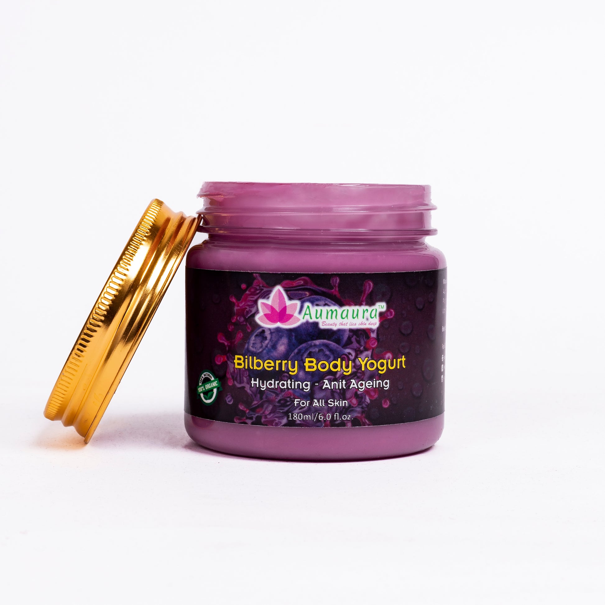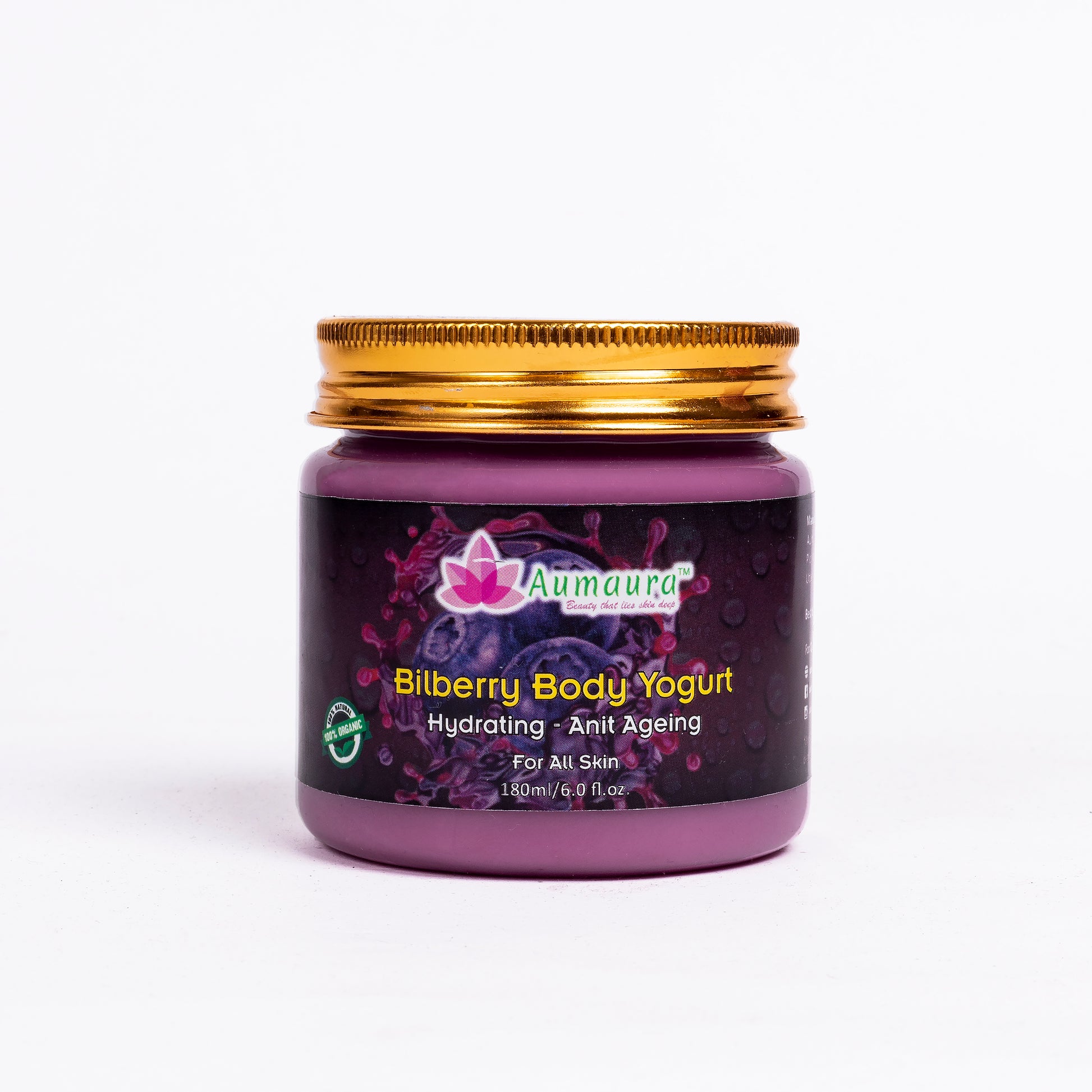The Bilberry Body Yogurt is a quick absorbing gel formulation by Aumaura that provides 24hr moisturisation for all skin types. Enriched with Rose water, Almond oil, and other naturally fragrant ingredients, it maintains the elasticity and suppleness of the skin and provides vital oil-moisture balance. This body yogurt has instant cooling effect. With fragrance that lingers at the back of your head, it has a long-lasting effect compared to regular creams and lotion.