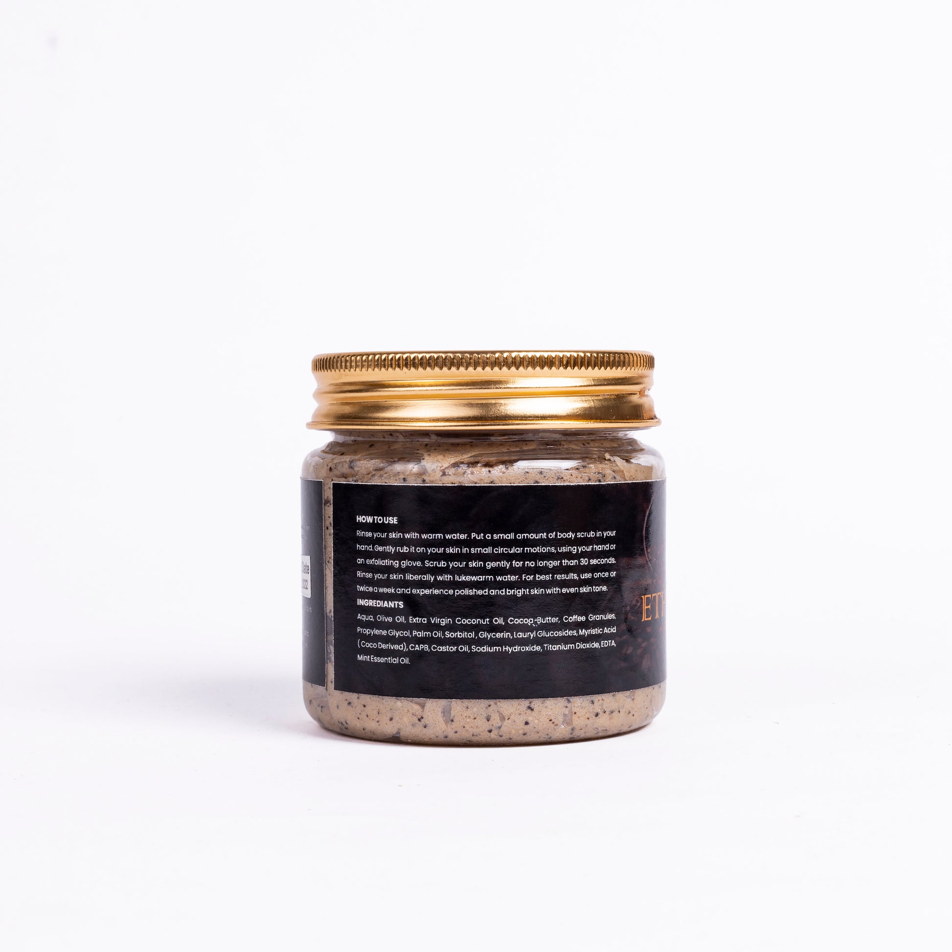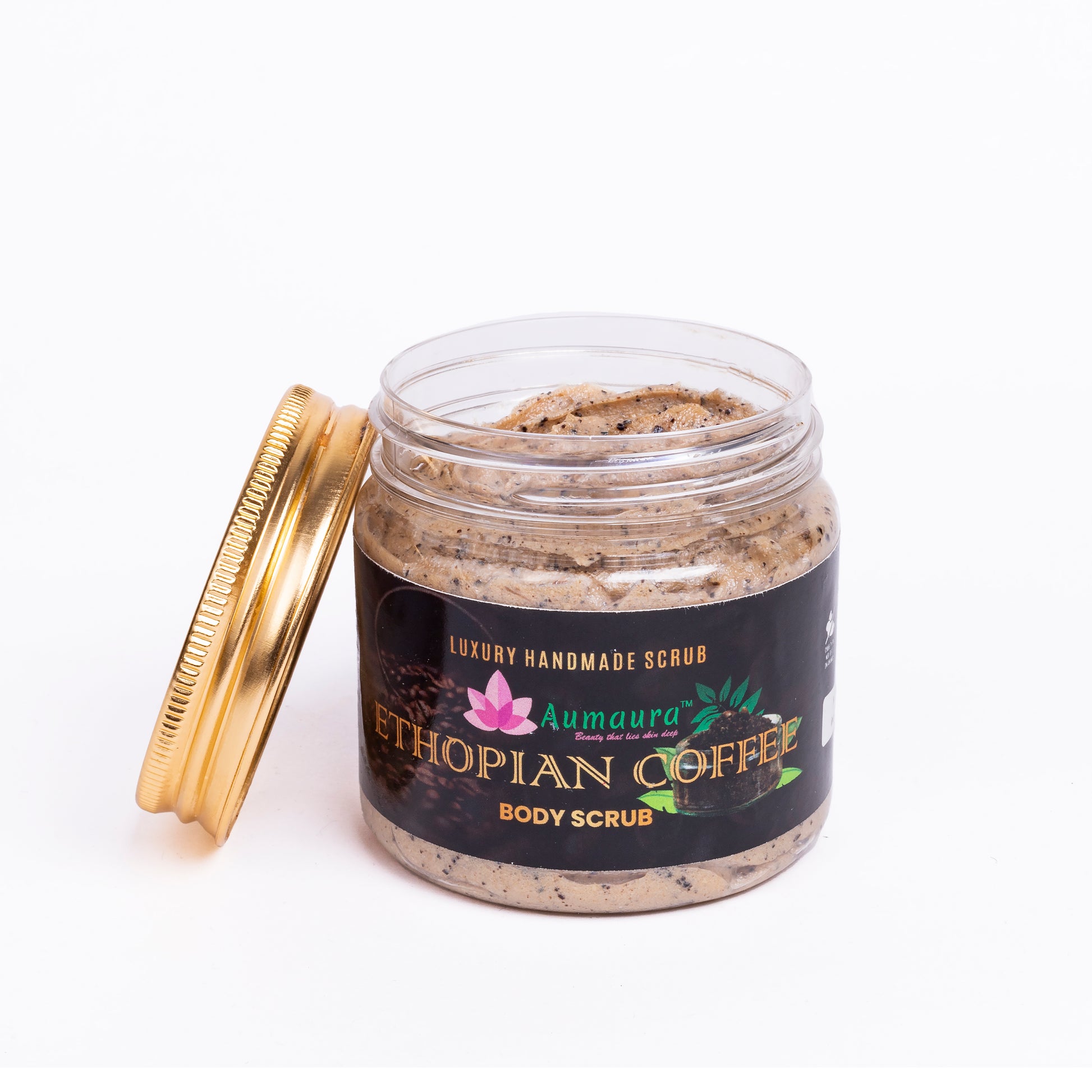 Enriched with freshly ground Ethiopian Coffee Granules, this amazing skin exfoliator deep cleanses and detoxifies the skin. Its active coffee granules unclog pores, remove trapped impurities and dead skin cells which keep away painful acne, ingrown hair, and cellulite. The healing formula of this body scrub helps lock moisture and nutrients that keep the skin plump and forever glowing.