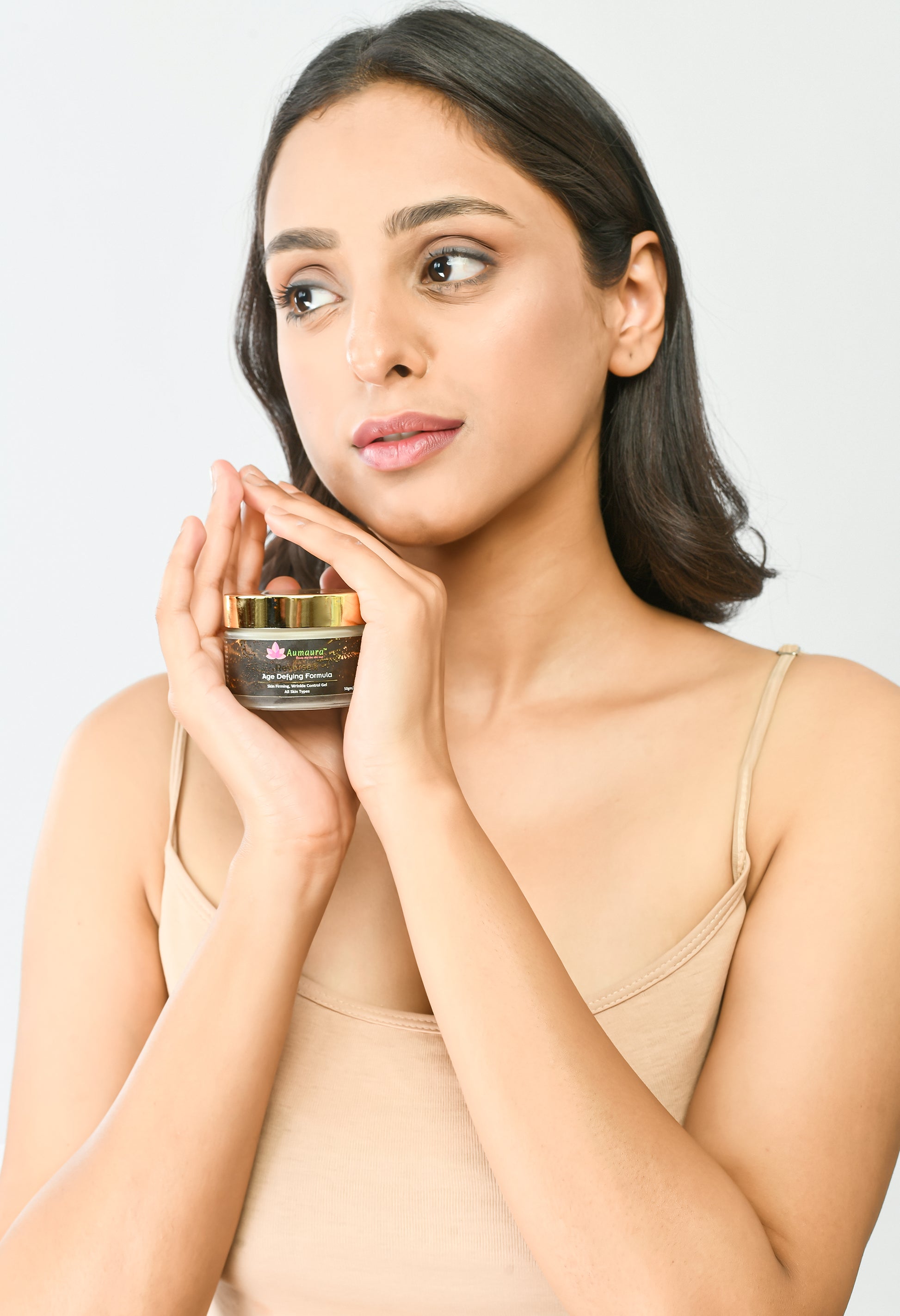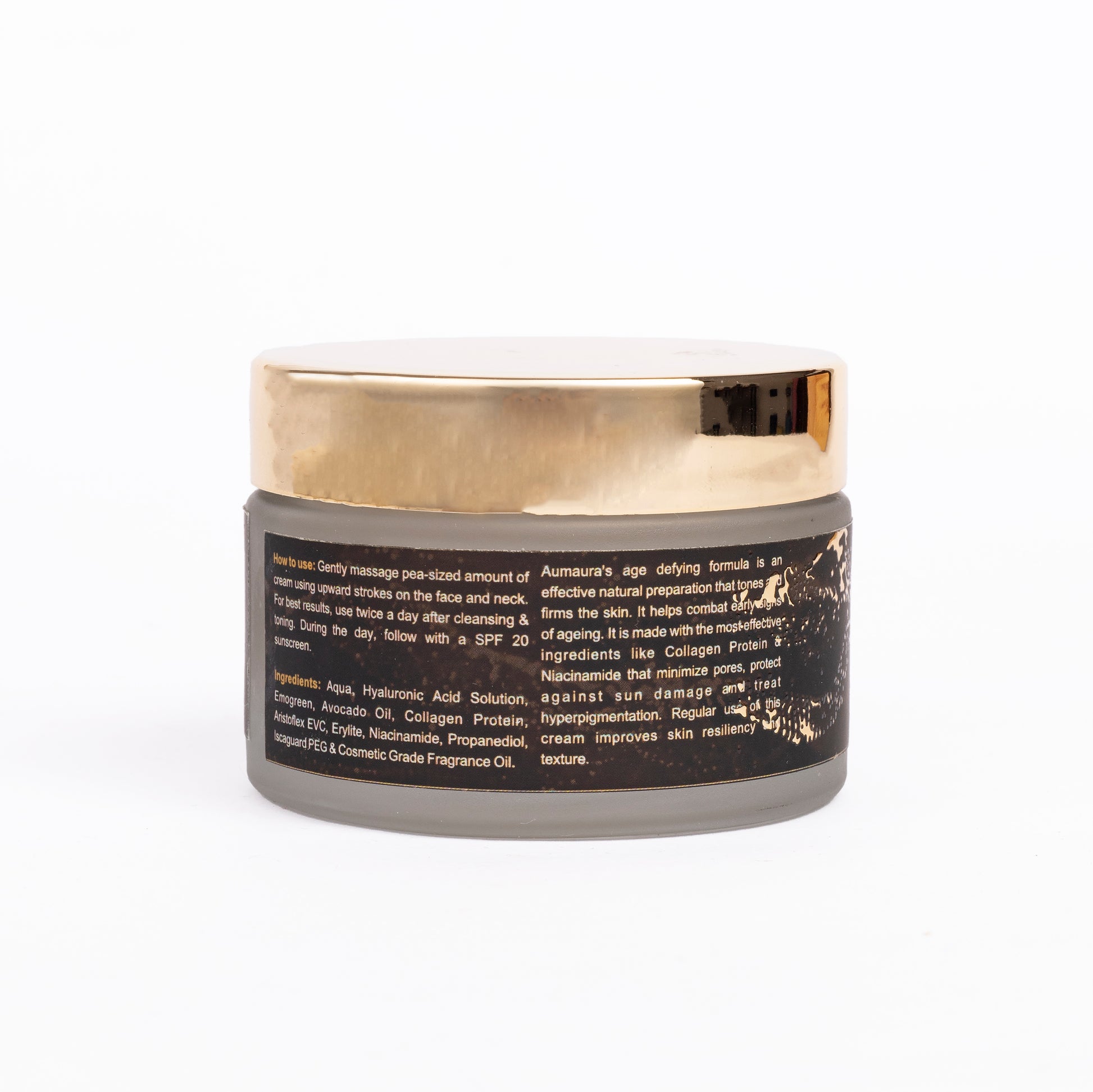 Aumaura’s age defying formula is a natural potion that even tones the skin and retains firmness. Suitable for all skin types, it targets age spots and combats early signs of ageing. Made with the ingredients like Collagen Protein & Niacinamide, it tightens pores, guards against sun-damage & treats hyperpigmentation. Regular use of this cream improves skin resiliency and smoothens texture.