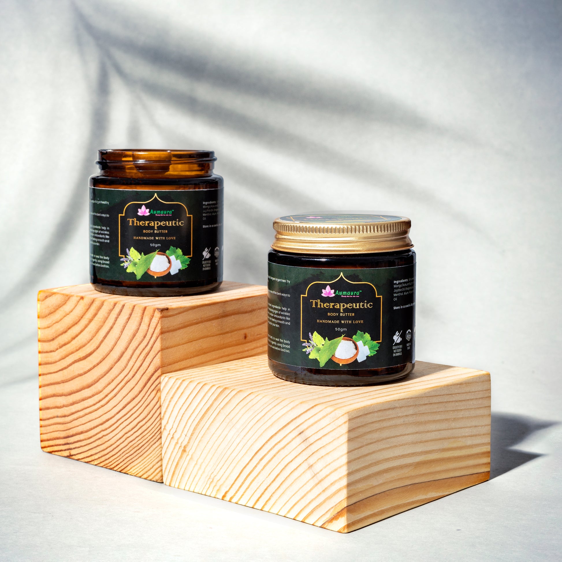 Formulated with goodness of nature’s best skin loving ingredients like Shea Butter, Cocoa Butter, and Extra Virgin Coconut Oil, our handmade Therapeutic Body Butter is the creamiest body butter that your skin needs. The freshness of Rosemary Essential Oil soothes your senses after each application. Filled with antibacterial, anti-inflammatory and antioxidant properties, it’s an ideal moisturiser for people with normal to sensitive skin. It not only uplifts your mood but also protects skin against harmful free radicals that hurt skin cells. The antifungal properties of Alum and Menthol help reduce inflammation and keeps eczema at bay. Bring it home and treat your skin with the comfort and well-being it deserves.