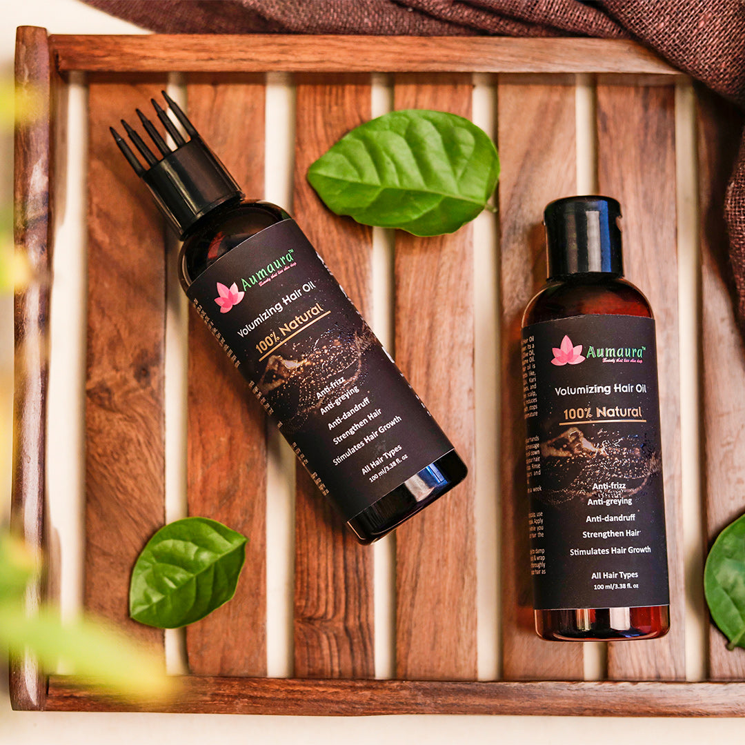 Aumauras Ayurveda Inspired Hair Oil is infused with all natural herbs like Amla, Hibiscus, Neem, Tulsi, Kari Leaves, Fenugreek, and more. This soothing & reviving hair oil is perfect for all types of hair.